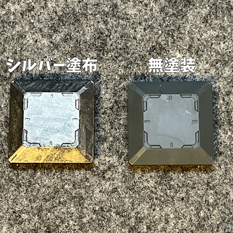 アクリジョンのシルバーをテキトーに筆塗りし、1日置いたのが下の画像